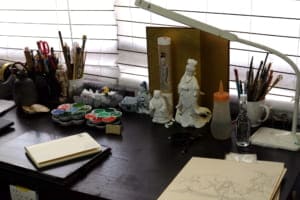 中田さんの仕事机。次はどんな作品が生まれてくるのだろう