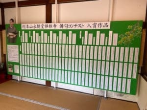 新緑の永観堂は、やはり清々しいです。ところで、第二回永観堂俳句コンテストの入賞作品は、永観堂のホームページに掲載していますが、永観堂の大玄関にも入賞作品のすべてが展示されています。参拝の折に、ご覧ください。